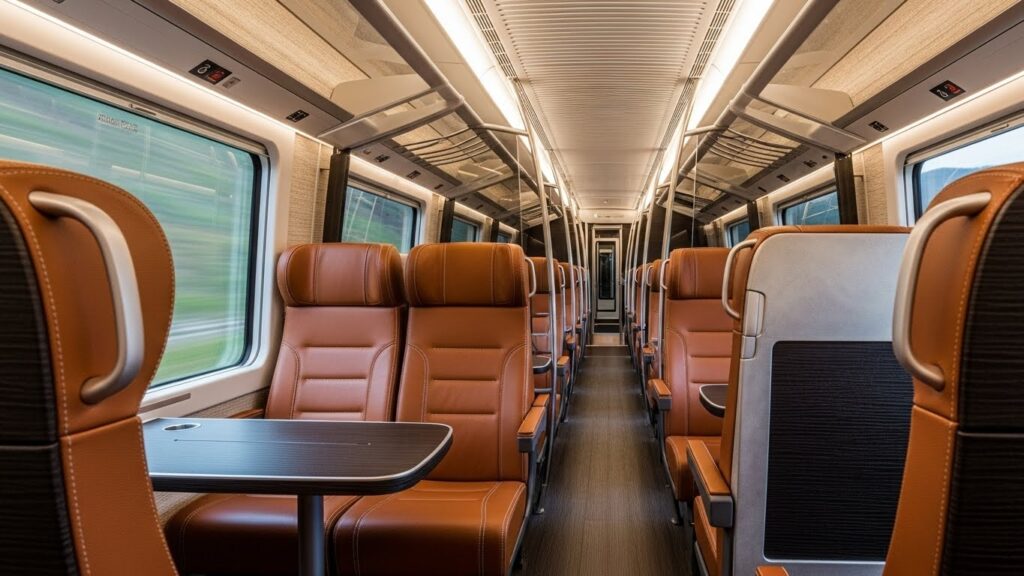 For train seating fabric and railway upholstery, synthetic leather often appears in commuter routes and regional trains, while intercity and high-speed trains typically feature genuine leather in their premium classes.